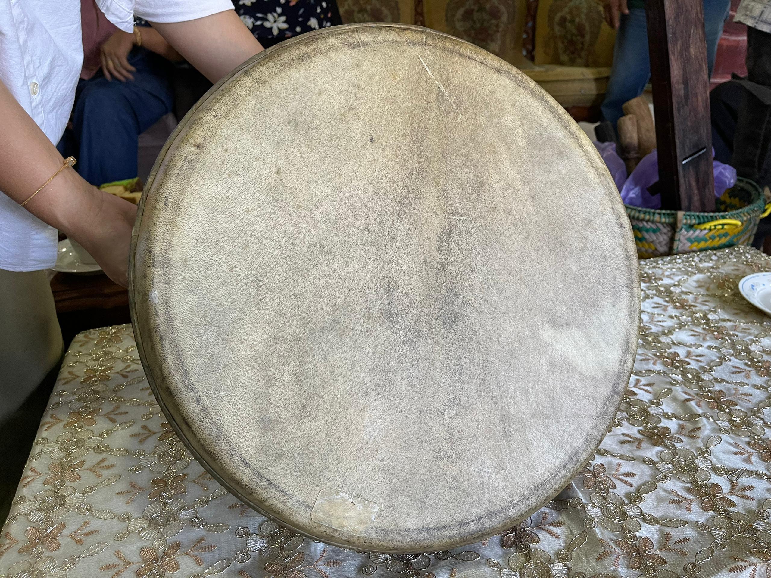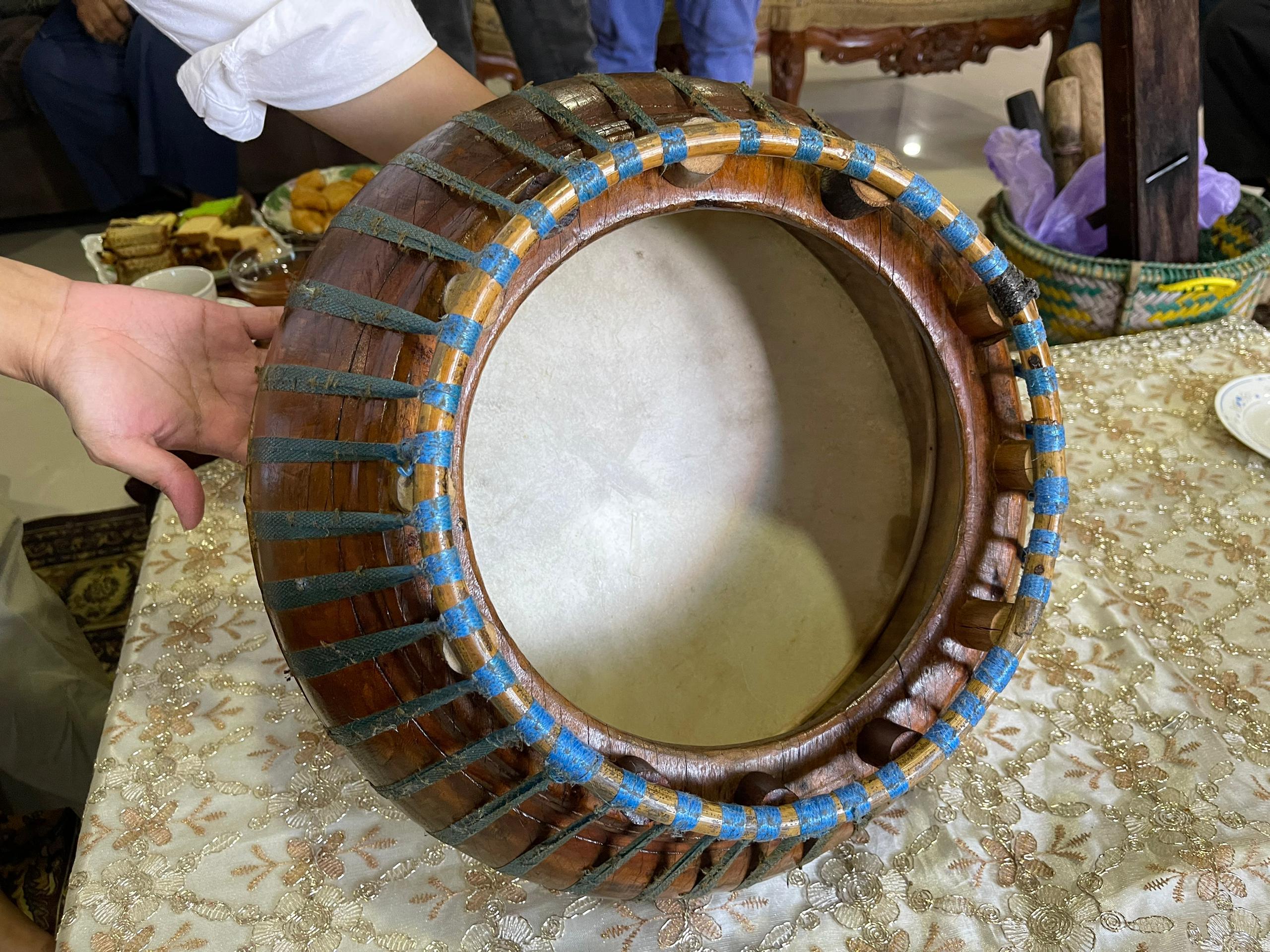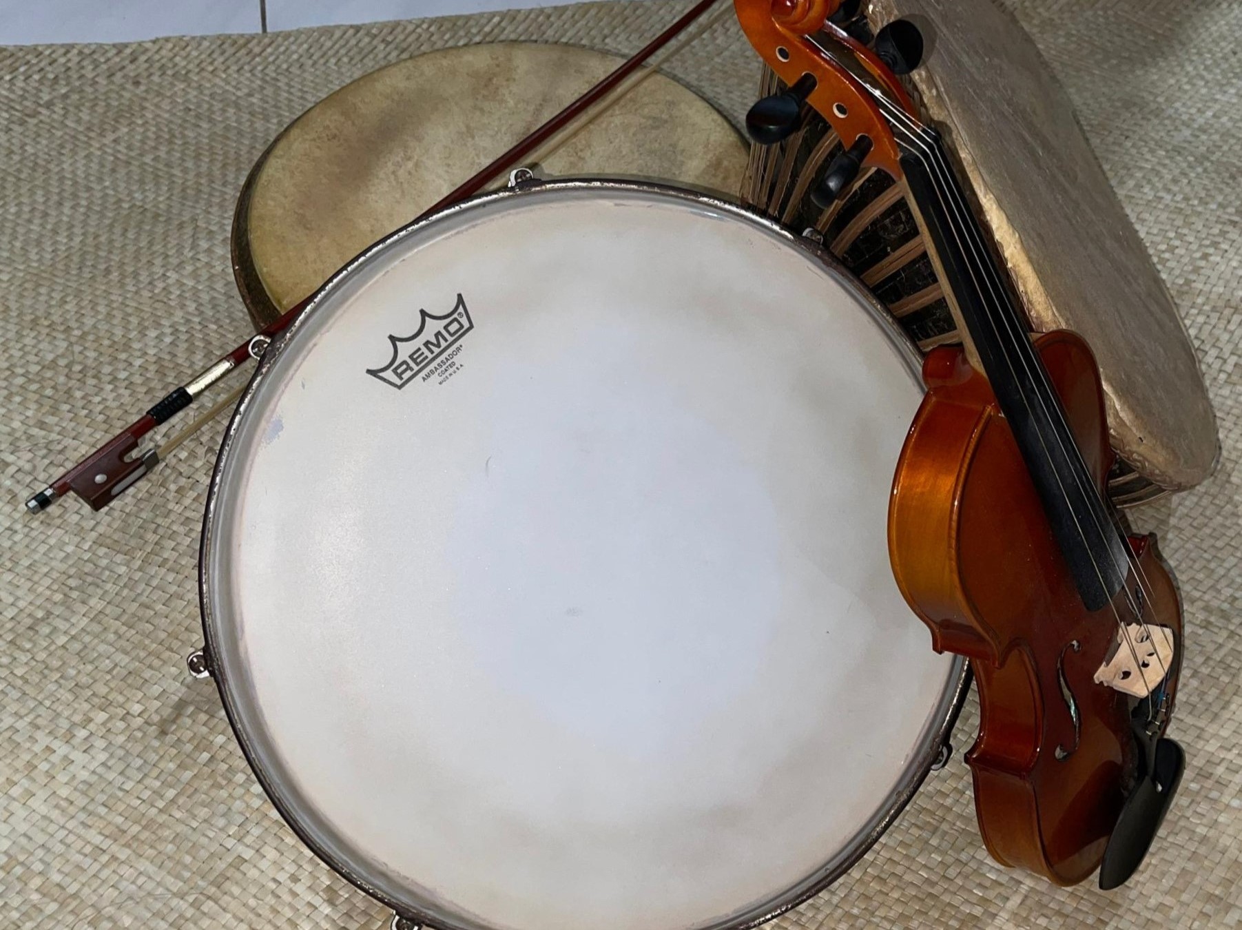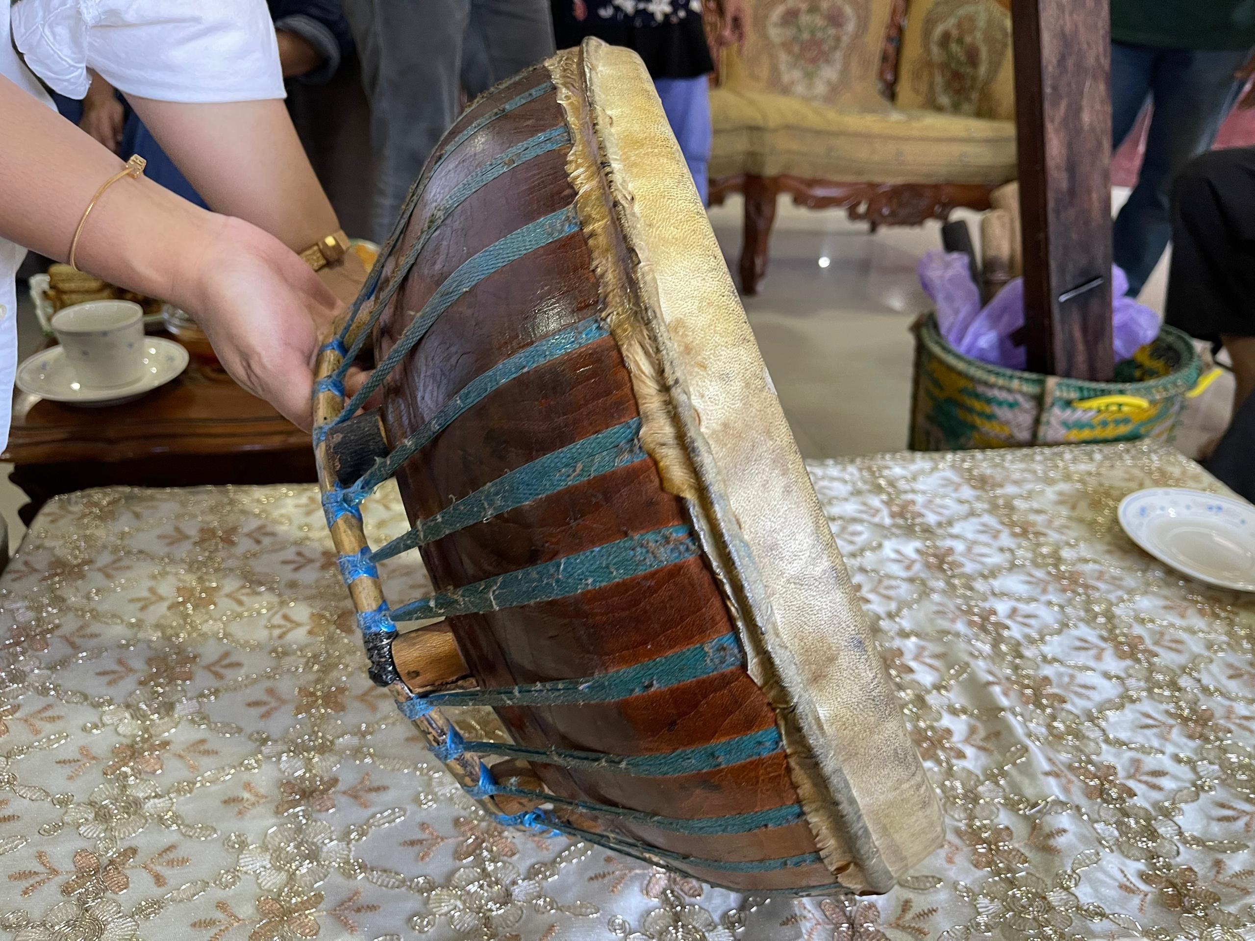 The musical instruments used during performances are drums and violins. Both drums are made of wood and secured with rattan while the top is covered with goat skin.